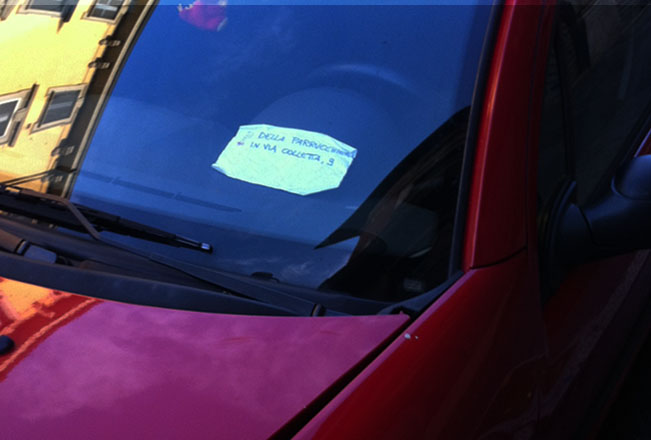 E allora crescono i biglietti sui cruscotti delle auto parcheggiate su righe gialle e blu per ricordare che il proprietario è il negoziante lì vicino, i parcheggi quotidiani in sosta vietata in spazi dove a un comune mortale rimuoverebbero subito l’auto, l’appropriazione di aree destinate al parcheggio come estensioni della propria attività, i marciapiedi a uso esclusivo per i propri mezzi, le vie intasate dalle auto in doppia e tripla fila tutti i giorni e alla stessa ora davanti a locali noti e stranoti.